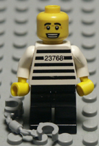 no. #CLA030 Lego minifigure Lego robber / criminal figure '23768' black stripe pattern,
